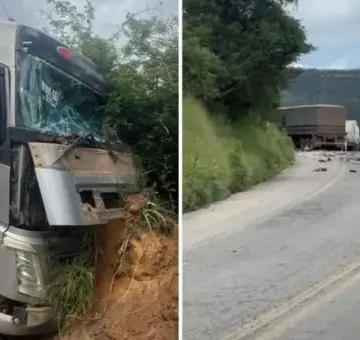 Veículos de entrega e carro particular foram atingidos por carreta em trecho escorregadio; população cobra área de escape. Nesta segunda-feira, ...