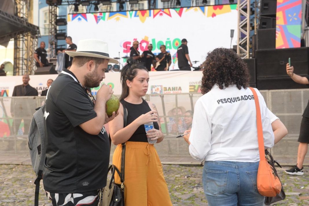 Enquanto os pesquisadores atuavam pelas ruas do Centro Histórico, no posto do Serviço de Atendimento ao Turista (SAT), que funciona no Terreiro de Jesus, a Setur-BA recebia os visitantes, com trio de forró e orientações sobre a programação junina e os atrativos turísticos da Bahia.