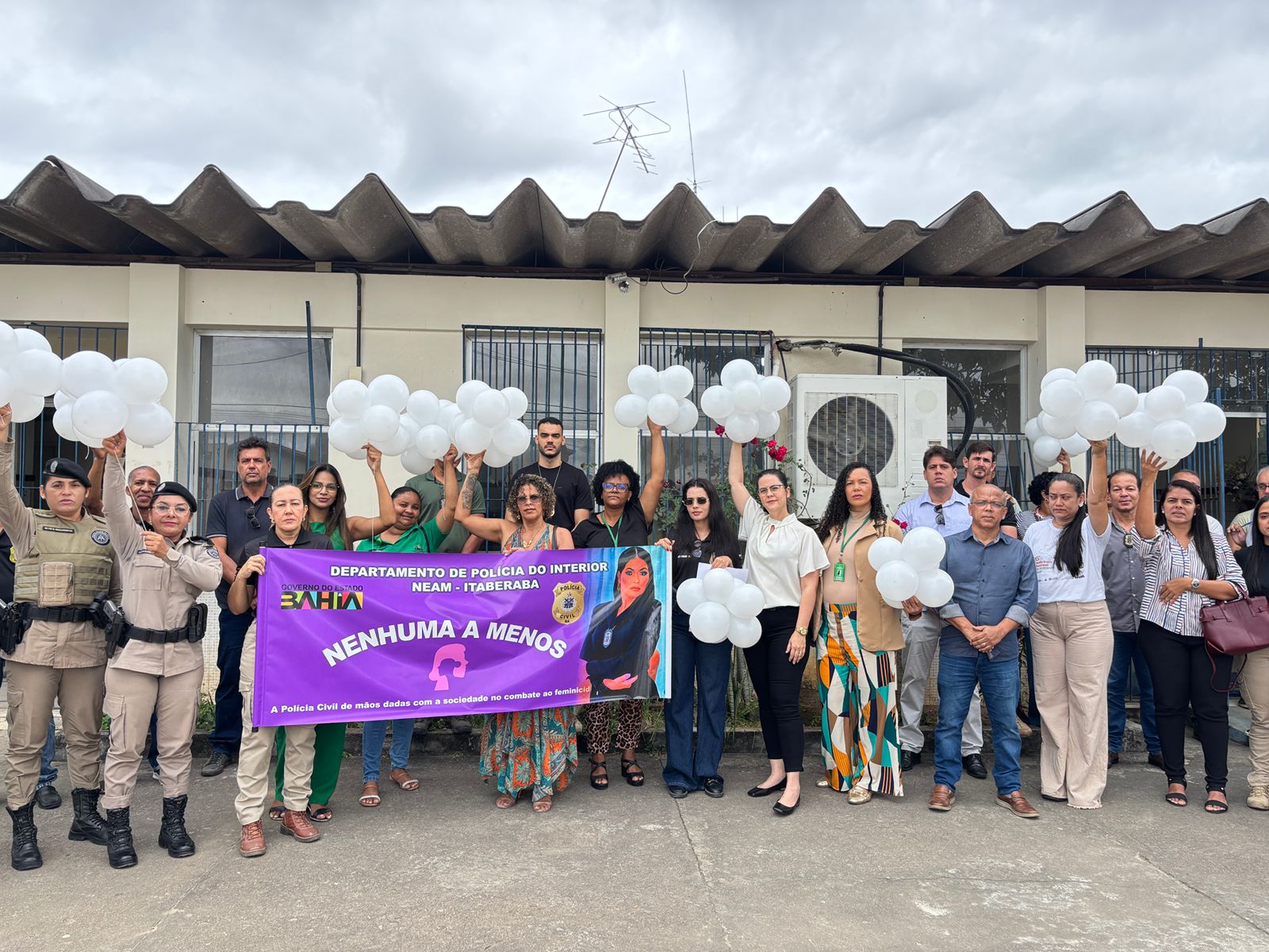 A Polícia Civil da Bahia, por meio dos Núcleos Especiais de Atendimento à Mulher (Neams) das cidades de Jacobina, Senhor do Bonfim e Itaberaba, promoveu nesta segunda-feira (11) homenagens à delegada Patrícia Neves Jackes Aires, vítima de feminicídio em agosto do ano passado. A ação faz parte das atividades realizadas durante a campanha “Nenhuma a Menos”, em alusão ao Agosto Lilás, mês de enfrentamento à violência contra a mulher.