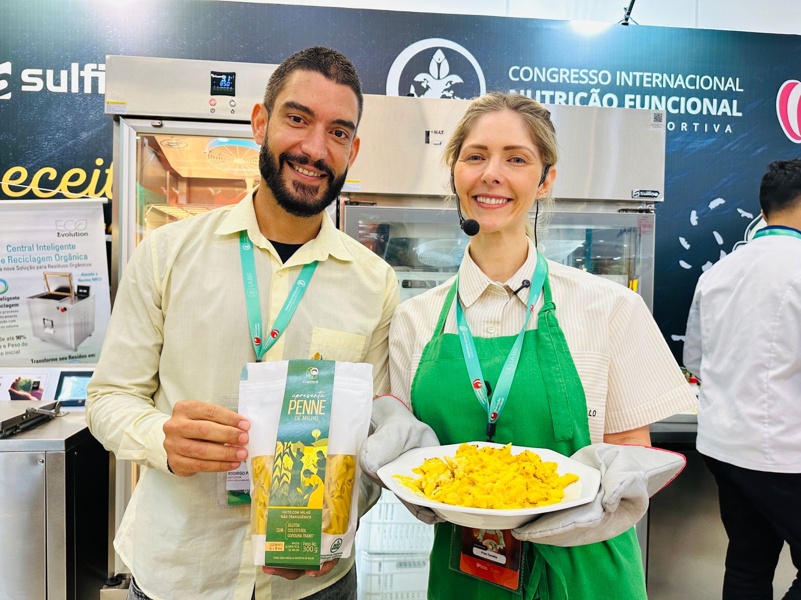 A culinária da agricultura familiar da Bahia conquistou visibilidade internacional nesta quinta-feira (18), em São Paulo, durante o Congresso Internacional de Nutrição Funcional. No espaço Green Kitchen – Cozinha Show, a chef Fran Tonello apresentou o Penne Puro Milho, uma massa sem glúten produzida a partir de milho não transgênico cultivado por agricultores da Cooperativa Agropecuária Mista Regional de Irecê (Copirecê).