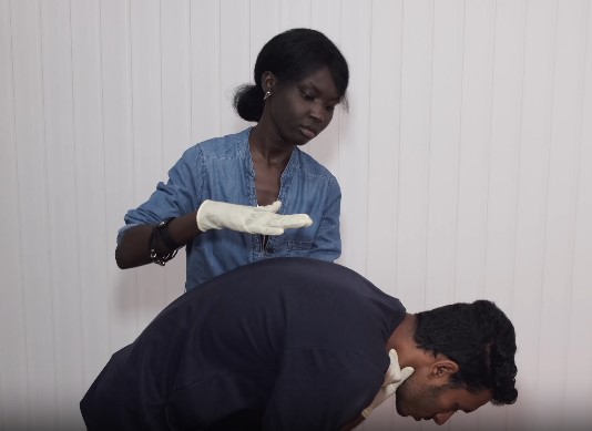 Para crianças maiores de um ano e adultos, o protocolo começa verificando se há obstrução total, ausência de tosse, som ou respiração. Só depois, a pessoa deve se posicionar atrás da vítima, levemente inclinado para frente, e dar cinco pancadas firmes nas costas com o calcanhar da mão.