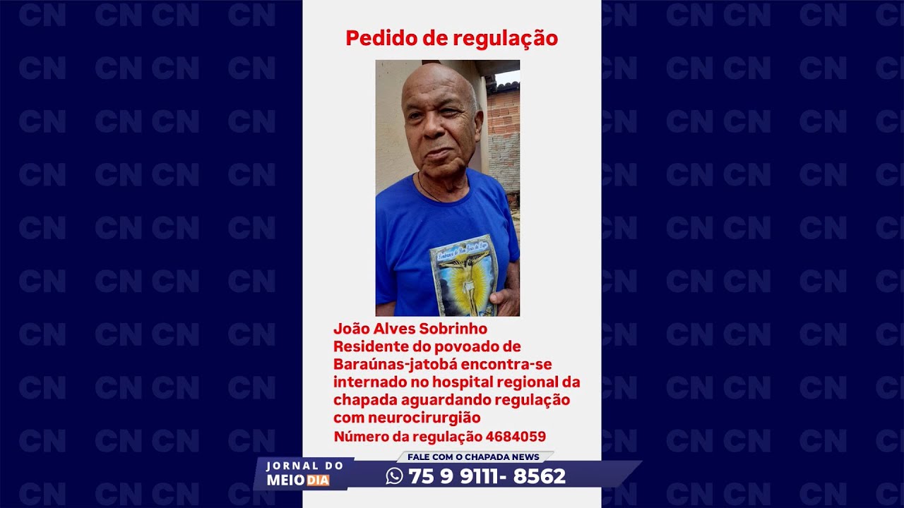 No Jornal do Meio Dia desta sexta-feira, foi exibido um áudio de Jair, familiar de João Alves Sobrinho, relatando a situação do paciente. João está internado no Hospital Regional da Chapada e aguarda transferência para uma unidade hospitalar que disponha de neurocirurgião, necessária para a continuidade do seu atendimento.