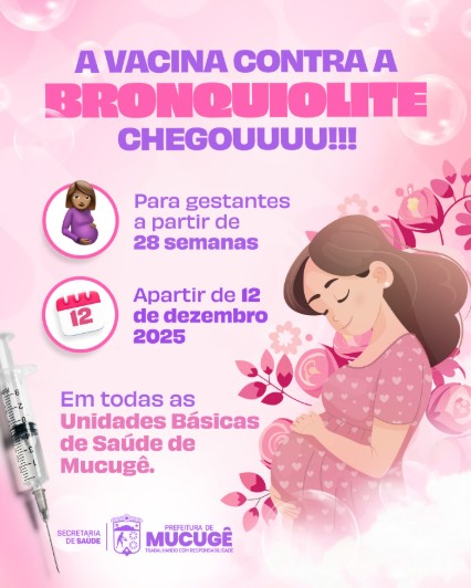 A Prefeitura de Mucugê, em post nas redes sociais, reforça que a decisão da mãe em se vacinar é fundamental para a defesa do bebê, contribuindo para reduzir riscos e garantir um início de vida mais saudável. A orientação é que todas as gestantes dentro do período recomendado procurem a unidade de saúde mais próxima para receber a imunização.