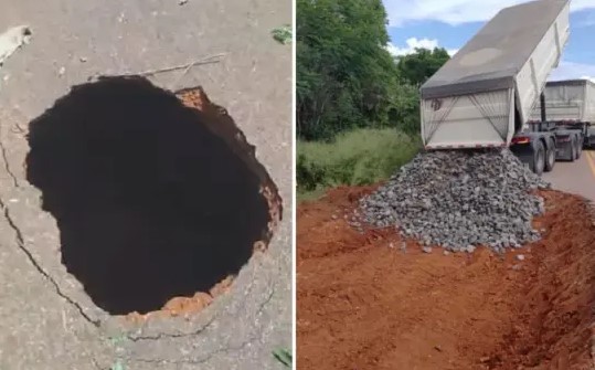 Uma cratera se abriu na rodovia BA-245, na altura da localidade conhecida como Maria Bobó, na zona rural do município de Itaetê, na Chapada Diamantina, oferecendo risco a motoristas que trafegam pelo trecho.