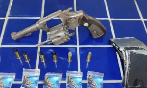 Na busca pessoal e veicular, os policiais encontraram papelotes de substância análoga à cocaína, além de um revólver calibre .38 municiado com seis cartuchos.
