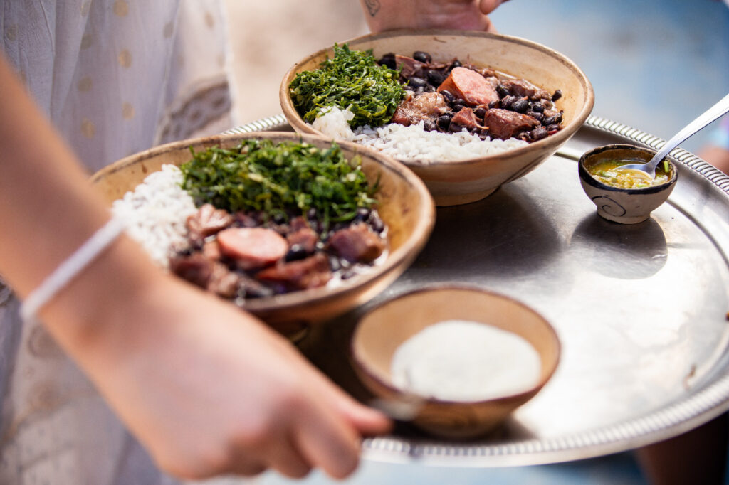 Alimentação: Feijoada nas versões tradicional e vegetariana;