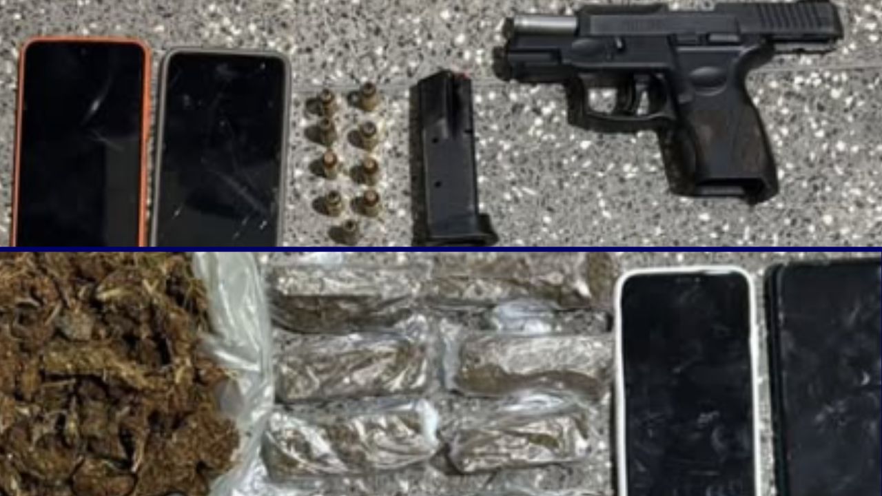 De acordo com os policiais, em ronda pela Rua João Oliveira, a guarnição avistou um homem que fugiu ao notar a viatura e se abrigou em uma casa, onde foi detido. No imóvel, conforme a equipe, foram localizados um casal que admitiu itens proibidos; a busca revelou substância similar à maconha, pacotes para divisão de drogas, eletrônicos e uma pistola calibre .40 com munições.