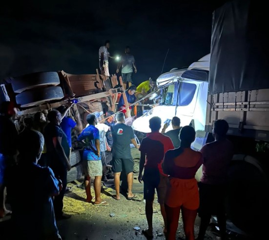 A força da batida destruiu completamente a cabine da segunda carreta, deixando o motorista preso às ferragens. A operação de resgate durou cerca de uma hora e meia, envolvendo o Corpo de Bombeiros, o Serviço de Atendimento Móvel de Urgência (SAMU) e voluntários. A equipe da Unidade de Suporte Avançado (USA) precisou estabilizar a vítima ainda no local com administração de medicamentos antes da remoção.